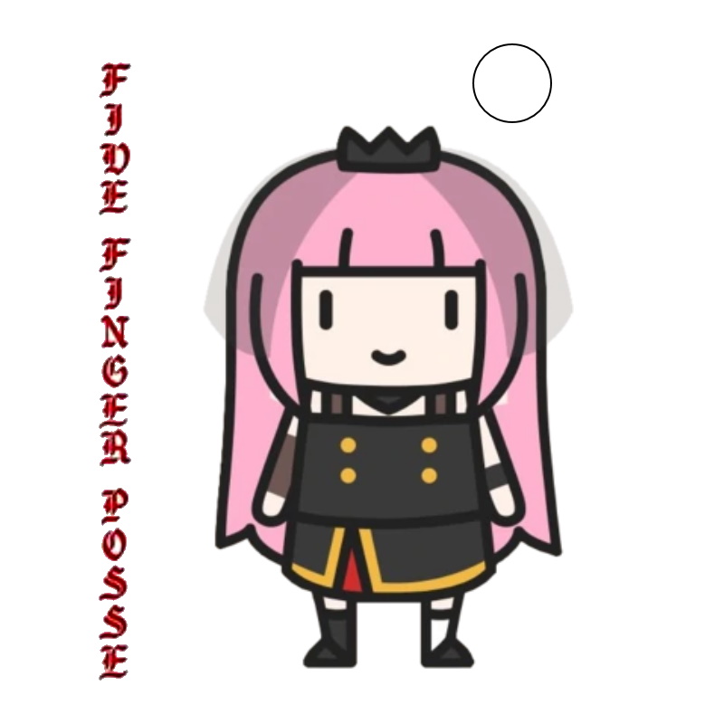 really stupid dumb little edit i made where it's the Five Finger Posse logo but instead of grim reaper it's chibi mori calliope cuz xd |